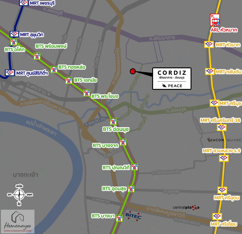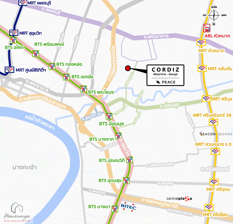 ⇒ การเดินทางโดยรถไฟฟ้า : โครงการอยู่ไม่ไกลจากรถไฟฟ้า 2 เส้นทางหลัก ทั้ง BTS อ่อนนุช และ MRT หัวหมาก ช่วยให้การเดินทางเข้าเมืองเป็นเรื่องง่าย ลดภาระการขับรถในวันที่การจราจรหนาแน่น