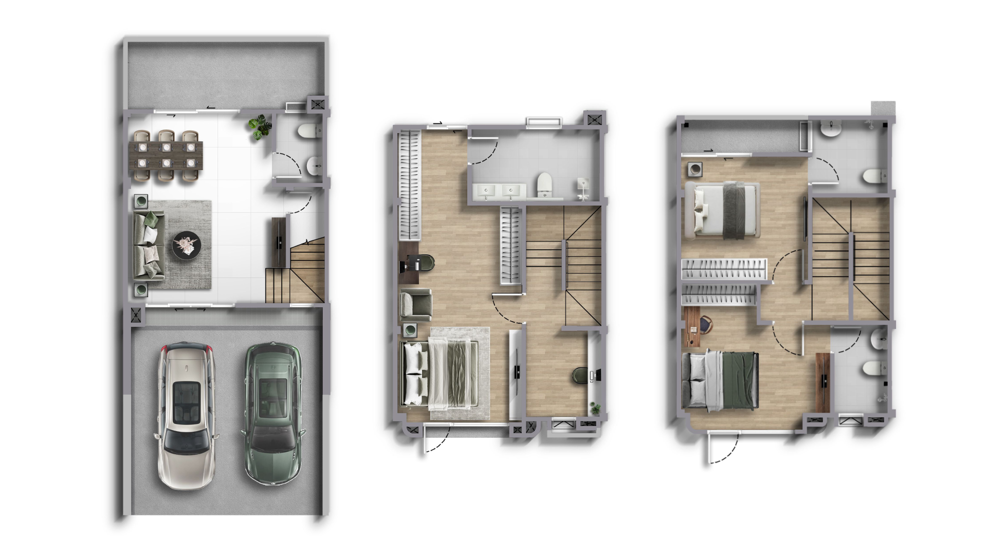ด้านบนชั้น 3 จัดเป็น 2 ห้องนอน โดยทั้ง 2 ห้องได้ห้องน้ำในตัวครบทุกห้อง เพิ่มความเป็นส่วนตัวและความสะดวกในการใช้งาน