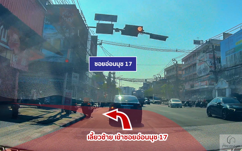 เจอซอยอ่อนนุช 17 แล้วเลี้ยวซ้ายค่ะ โดยซอยนี้จะใช้ลัดไปออกพัฒนาการได้เลยนะคะ