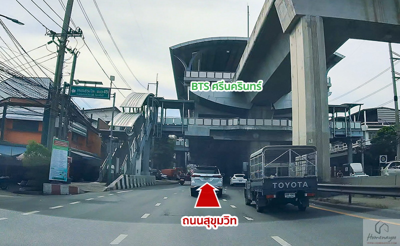 ถึงโครงการ สราญสิริ ศรีนครินทร์-แพรกษา ทางฝั่งขวามือ / ตรงข้ามกันจะเป็นโครงการ อณาสิริ ศรีนครินทร์-แพรกษา