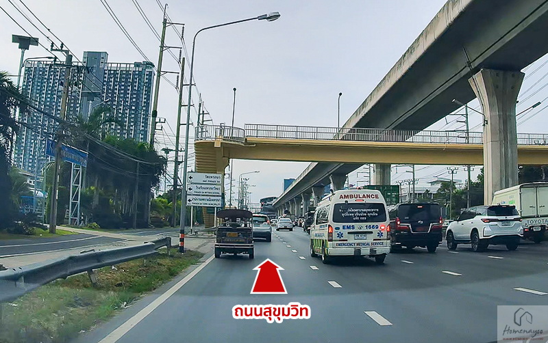 การเดินทางในวันนี้ เราเดินทางมาจากถนนสุขุมวิท ฝั่งขาเข้า ผ่านรถไฟฟ้า BTS ศรีนครินทร์ไป