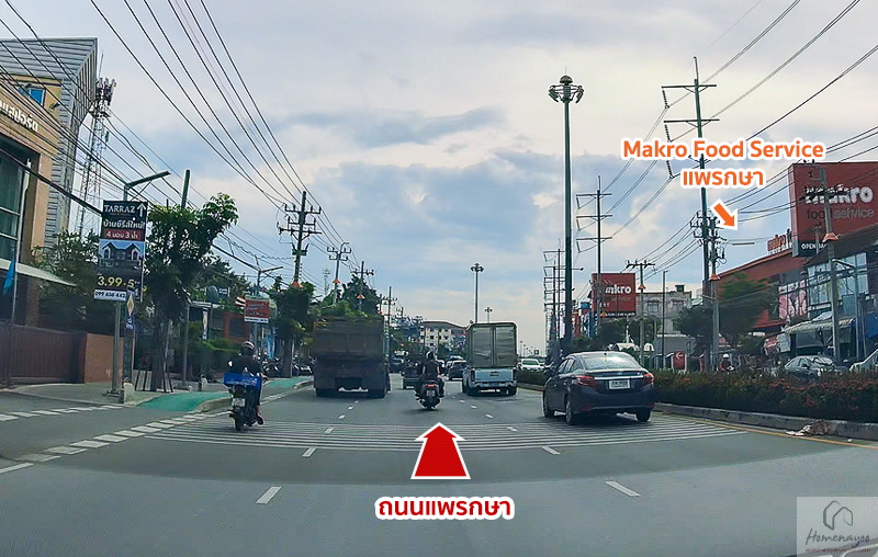 ขับผ่าน Makro Food Service แพรกษา ทางฝั่งขวามือ แล้วให้ชิดซ้ายไว้ค่ะ