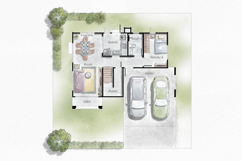 จุดเด่นอีกอย่างคือบ้านทุกแบบมาพร้อมห้องนอนล่าง รองรับทั้งครอบครัวใหญ่หรือผู้สูงอายุ ฟังก์ชันแบ่งเป็นสัดส่วนลงตัว พร้อมพื้นที่อเนกประสงค์ให้ทำเป็นมุมส่วนตัวได้ง่าย ๆ 🌿✨