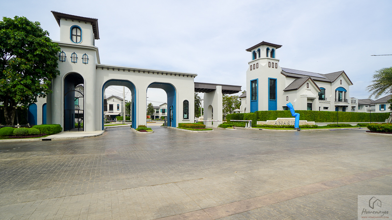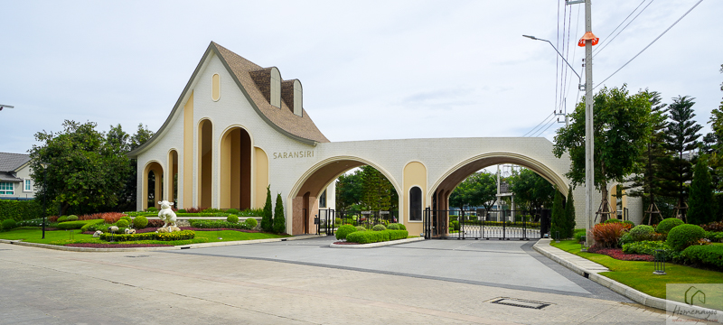 มองไปทางขวามือจะเจอกับ Main Gate ของโครงการ สราญสิริ ศรีนครินทร์-แพรกษา ที่เราจะพาไปชมกันในวันนี้ค่ะ