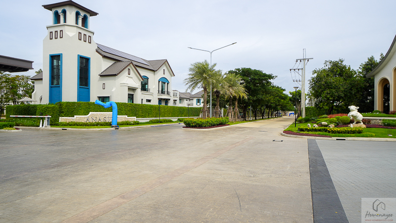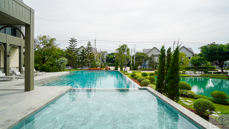 ⇒ การออกแบบโครงการ แบบบ้าน และวัสดุ : บรรยากาศของโครงการถูกออกแบบให้ดูเรียบหรูและเป็นระเบียบในสไตล์ Modern Farmhouse ที่ดูอบอุ่น ใช้สีโทนธรรมชาติสบายตา การจัดผังโครงการให้โซนบ้านอยู่อาศัยอยู่ในสภาพแวดล้อมสงบ สายไฟลงใต้ดินภายในโครงการ ทำให้ทัศนียภาพดูเป็นระเบียบ