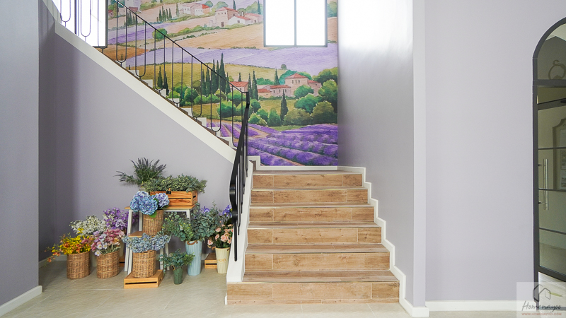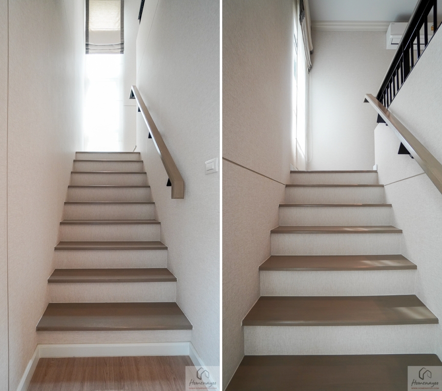 ที่โถงบันไดจะมีหน้าต่างกระจกบานผสมทรงสูงติดมาให้ 2 ชุด ทำให้พื้นที่ตรงนี้มีความโปร่งสว่าง และช่วยให้เดินขึ้น-ลงบ้านได้ปลอดภัยมากขึ้น