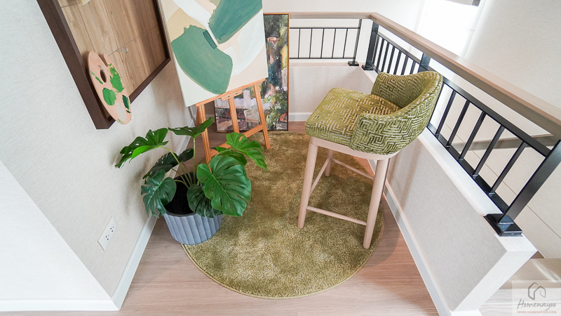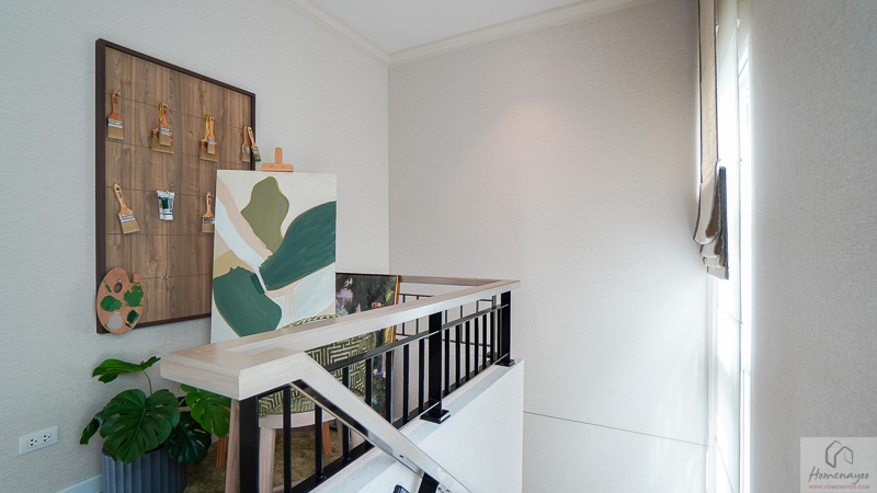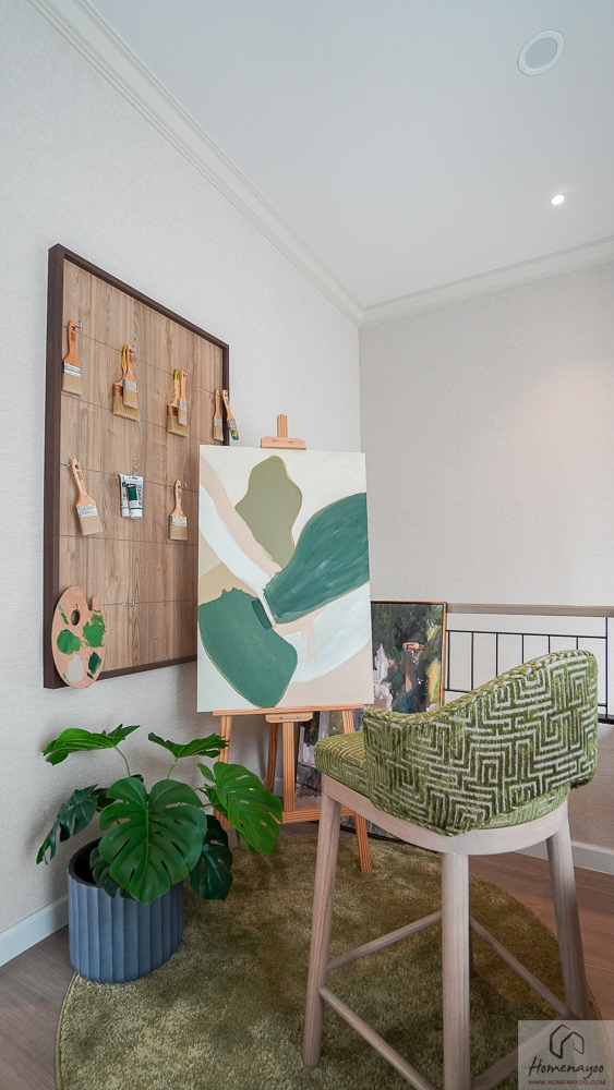 ขวามือเป็นพื้นที่อเนกประสงค์ ที่ในบ้านตัวอย่างจัดเป็นมุมวาดภาพทำงานอดิเรกมาให้ดูเป็นไอเดีย