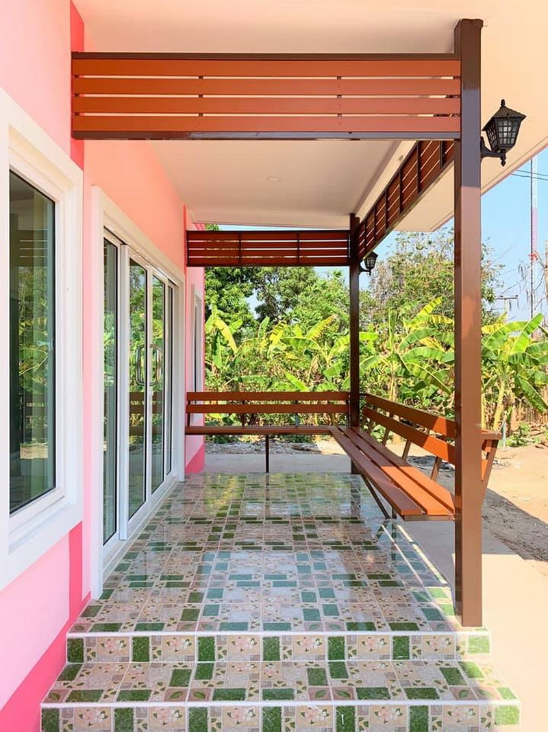 รีวิว บ้านโมเดิร์นชั้นเดียว สวยหวานด้วยโทนสีชมพู-ขาว งบประมาณ 3.5 แสนบาท