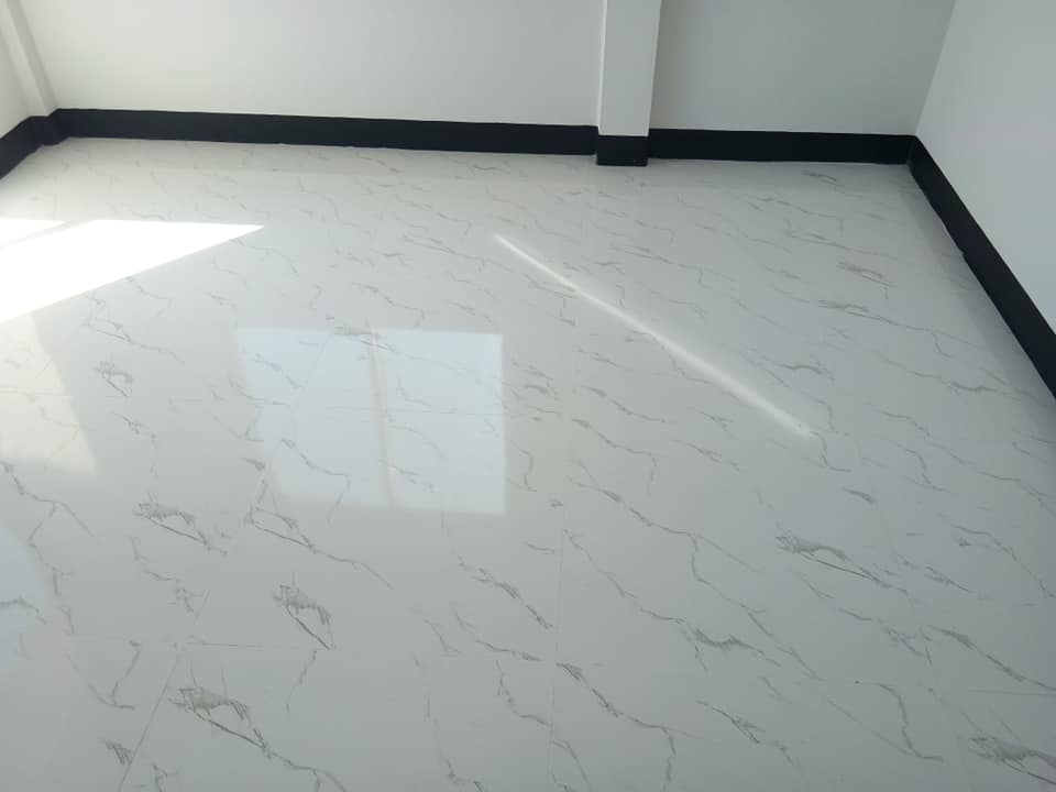 ห้องนอนทั้ง 3 ห้อง ขนาดเท่า ๆ กัน ปูพื้นแรกนิตโต้ลายหินอ่อน มีหน้าต่างกระจกบานเลื่อนติดมาให้ครบทุกห้องค่ะ