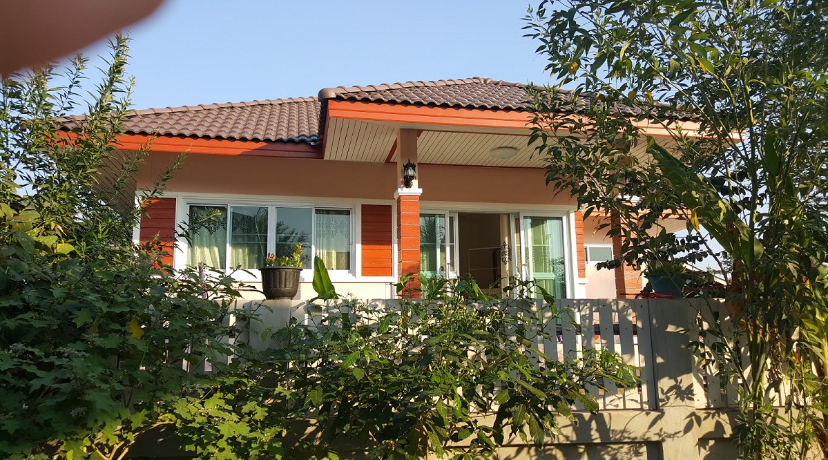 เป็นรูปบ้านของเจ้าของบล็อกเองค่ะ เป็นบ้านเดี่ยว 3 ห้องนอน 3.5 x 3.5 เมตร 2 ห้อง และ 3.0 x 3.0 เมตร 1 ห้อง, 1 ห้องน้ำ, 1 ห้องนั่งเล่น 1 ห้องครัวไทย ที่พอดีสำหรับคนชอบทำอาหาร