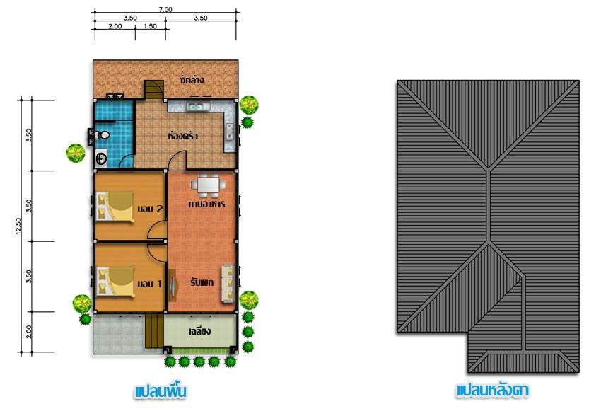 ขนาดตัวบ้าน กว้าง 7.00 เมตร ลึก 12.50 เมตร