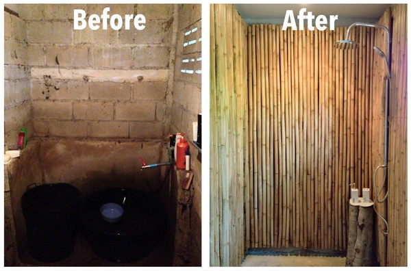 ต่อด้วยการรีโนเวทห้องน้ำ จากสถาปนิกหนุ่มคนเดิม จาก FB ฟาร์มสเตย์ “บ้านไร่ ไออรุณ baan rai i arun” และแน่นอนว่า วัสดุที่เลือกใช้ คือไม้ไผ่ และ กิ่งไม้จากในสวน รวมถึงสุขภัณฑ์ ที่ไปเลือกจาก HomePro แบบลดราคาแล้วนะ ด้วยงบประมาณ 12,900 บาท* เมื่อแปลงโฉมแล้วออกมา น่าใช้ น่าอาบ แถมถูกสุขลักษณะอีกด้วย พร้อมแล้วมาดูก่อนและหลังกันได้เลย