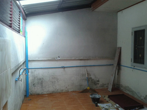 ตามด้วยส่วนของหลังบ้านค่ะ เนื่องจากก่อนปรับปรุงไม่มีห้องครัวเลยแปลงโฉมเป็นห้องครัวซะเลย