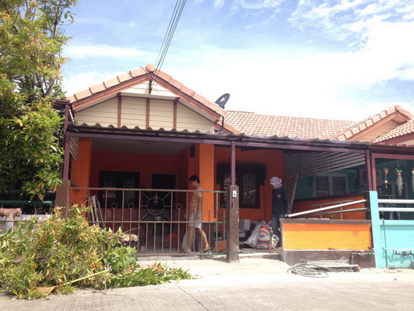 ตามด้วยสุดท้ายค่ะหน้าบ้าน ต่อเติมหลังคาโครงเหล็กเพื่อเป็นโรงจอดรถ