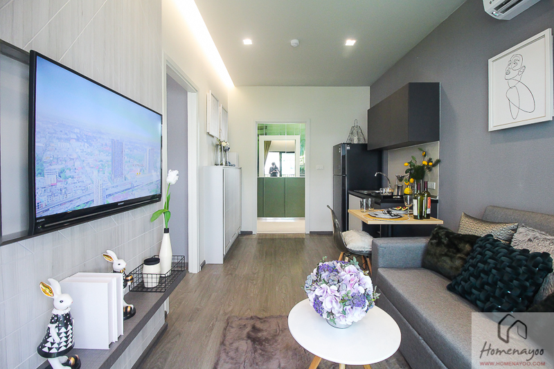การออกแบบโครงการและวัสดุ : ตัวโครงการถือว่ามีจำนวนยูนิตค่อนข้างเยอะ แต่เมื่อเทียบกับโครงการเพื่อนบ้านโดยรอบแล้วก็ถือว่าอยู่ในระดับกลางๆ ส่วนกลางทำมาให้ครบพอให้ใช้งาน ส่วนห้องพักเค้าจะเน้นเป็นไซส์ที่ไม่ใหญ่มาก ขนาดห้องเหมาะกับคนทำงาน ที่อยู่ 1 – 2 คน ทำให้ราคาแพคเกจยังอยู่ในช่วงราคาที่หยิบจับง่าย แต่ในห้องจะต้องซื้อของเพิ่มเองพอสมควร ซึ่งตรงนี้ก็จะดีสำหรับคนที่ชอบตกแต่งห้องเอง และถ้าใครที่อยากได้พื้นที่กว้างขึ้นมาอีกนิดก็ยังพอมีห้อง 34 ตร.ม. ให้เลือกค่ะ