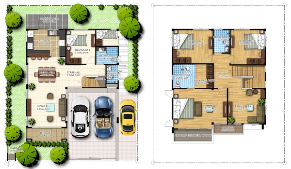 ขนาด 4 ห้องนอน 3 ห้องน้ำ จอดรถ 2 คัน (สำหรับครอบครัวใหญ่)