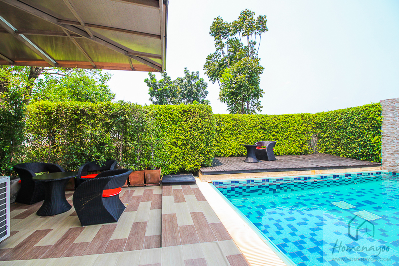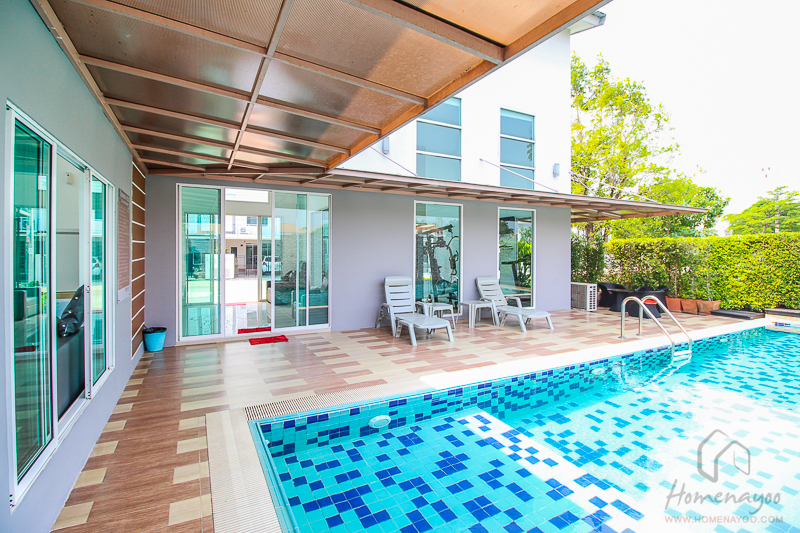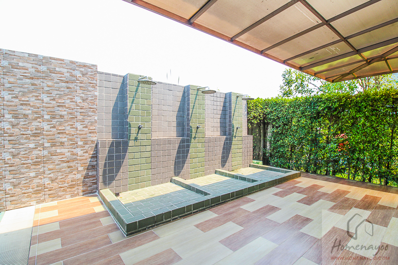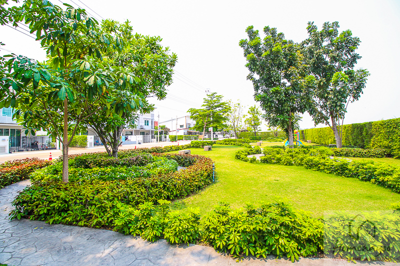 สาธารณูปโภค – ส่วนกลางที่นี่จะมี Club House ด้านในมีพื้นที่นั่งพักผ่อน ห้องฟิตเนส สระว่ายน้ำขนาด 10 x 5 ม. ระบบคลอรีน มีพื้นที่นั่งเล่นรอบๆสระ มีห้องน้ำและห้องอาบน้ำแยกชายหญิง ติดกับ Club House เป็นสวนส่วนกลาง ตกแต่งมาทั้งไม้ใหญ่ ไม้พุ่ม มีความร่มรื่นพร้อมที่นั่งพักผ่อนและสนามเด็กเล่น มีสนามหญ้าโล่งๆ ไว้ทำกิจกรรมต่างๆได้ ถนนหลักโครงการกว้าง 16 ม. และ 12 ม. ถนนซอยกว้าง 8 ม. ระบบรักษาความปลอดภัยมี รปภ. ตลอด 24 ชม. ร้ัวรอบโครงการสูง 2.8 ม. ประตูทางเข้าออกโครงการมีไม้กระดก แยกทางเข้าออกตรงกลางเป็นป้อมยาม ใช้ Access card ในการเข้าออก ส่วน Visitor ต้องแลกบัตรก่อนครับ ติดตั้ง CCTV ที่ประตูทางเข้า และในซอยย่อย