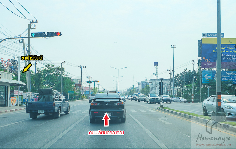 ข้ามแยกมาจะเข้าสู่ถนนเลียบคลองสอง เป็นเส้นที่อยู่หน้าโครงการ ขับตรงไปครับ