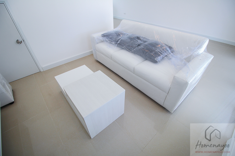 วางโซฟา และโต๊ะกลาง พื้นที่สามารถวางโซฟาตัว L ได้