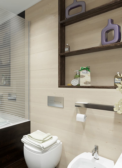 ตกแต่งห้องน้ำขนาดเล็ก สวยสบายด้วยลายไม้แนวทันสมัย