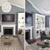 ห้องนั่งเล่นสีขาวมีเพดานลาดเอียงไปกับโครงหลังคานี้ ตกแต่งด้วยสีเทาและสีขาวอย่างสมดุลกันดี ผนังห้องเป็นสีเทาเข้มติดตั้งตู้และชั้นแบบบิ๊วอินสีขาวสว่างตาและยังสมดุลย์ด้วยการจัดห้องให้มีน้ำหนักเท่ากันทั้งด้านซ้ายและด้านขวา ตู้สีขาว ๆ ยังสามารถจัดวางของตกแต่งไอเท็มต่าง ๆ ให้มีความโดดเด่นได้ง่ายขึ้นอีกด้วยค่ะ บนผนังสีเทาระหว่างตู้สองใบติดตั้งทีวีจอแบนไว้ขนาดพอดี ๆ กับเตาผิง อยู่ในระยะที่หากนั่งที่โซฟาแล้วจะสามารถดูทีวีได้ระยะพอดีอีกด้วย