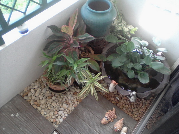 ปัจจุบันเรามีไม้ขัดๆกันหินร่วงลงไป มีพวกไม้ประดับแบบแขวน และต้นวาสนามาเพิ่มเติม และที่สำคัญมะลิออกดอกหอมชื่นนใจ ได้อารมณ์ต่างจังหวัด
