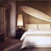 ที่สวยอีกจุดก็คือผนังด้านหลังเตียงที่นำเอาหญ้าสานมาตกแต่งกรุติดไว้พร้อมกับติดแผ่น Surf Board ให้ดูมีสีสันน่าสนใจมากขึ้น ให้บรรยากาศแบบทะเลสุด ๆ ไปเลยค่ะ เฟอร์นิเจอร์ชิ้นต่าง ๆ ภายในห้องเลือกที่มีความเรียบง่ายและไม่ตกแต่งให้รกจนแย่งซีนของวิวทะเลสวย ๆ ทั้งยังทิ้งพื้นที่ว่างโล่งไว้ในห้องเพื่อให้อากาศได้ไหล Flow ได้อย่างเต็มที่ ริมหน้าต่างจัดวางโซฟาเดี่ยวสีขาวนั่งสบายพร้อมโต๊ะขนาดเล็กวางถ้วยกาแฟหรืออาหารเช้า นั่งทานไปชมวิวไปสุขใจเหลือจะเอ่ยจริง ๆ นะคะ