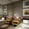 ห้องนอนเล็ก ๆ ห้องนี้เลือกตกแต่งด้วยธีมสีสันสดใสสไตล์โมเดิร์น เลือกใช้ผนังห้องสีเทาสลับกับไม้ลายสวย ๆ เตียงนอนเป็นเตียงแบบบิวท์อินติดผนังคล้ายโซฟาริมหน้าต่าง หัวนอนกรุด้วยผ้าลายสก็อตสีเหลือง-ดำ โต๊ะข้างเตียงสไตล์เรโทรน่ารักสีเหลืองสดใส สำหรับโต๊ะสีชมพูสดที่เห็นในภาพเป็นโต๊ะอเนกประสงค์ที่เมื่อถึงเวลานอนยังสามารถเลื่อนไปไว้ที่หน้าทีวีได้อีกด้วยค่ะ