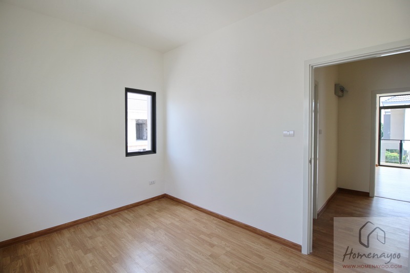ภาพรวมภายในห้องนอน 3 มีหน้าต่างกระจกบานเลื่อน และ บานกระทุ้งรวม 2 บาน รองรับเตียง 3.5 ฟุต และ เฟอร์นิเจอร์มาตรฐานได้