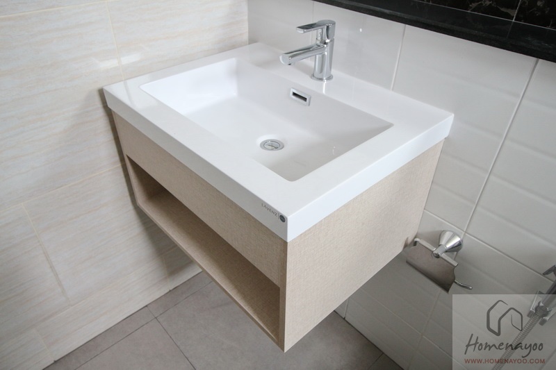 หลังประตูเป็นเคาน์เตอร์อ่างล้างหน้า