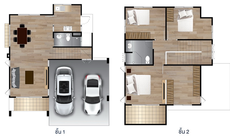 แปลนบ้านชั้น 1 | แปลนบ้านชั้น 2