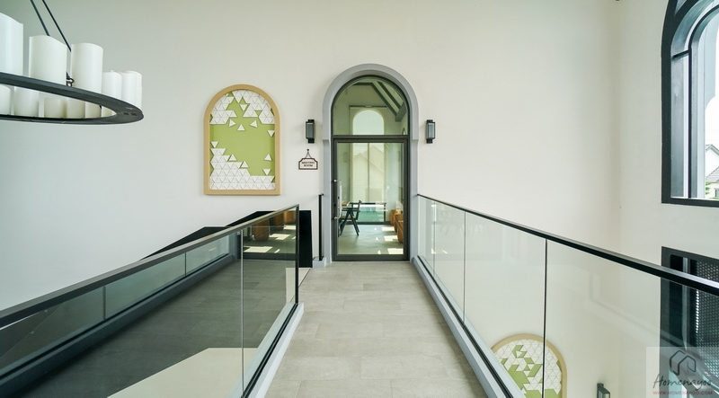 เริ่มกันที่ Family Area พื้นที่พักผ่อนเชื่อมต่อ Double Volume จาก Living ชั้นล่าง อากาศถ่ายเทสะดวก รับแสงสว่างภายนอกเข้ามาได้เยอะจากหน้าต่างบานผสมที่มาพร้อมช่องระบายอากาศ Breeze Panel และกระจก Full Height บานใหญ่แบบรอบด้าน พื้นที่กว้างจัดวางชุดโซฟาขนาดใหญ่ได้สบาย ๆ หรือจะปรับเป็นมุมโต๊ะทำงานก็ลงตัว