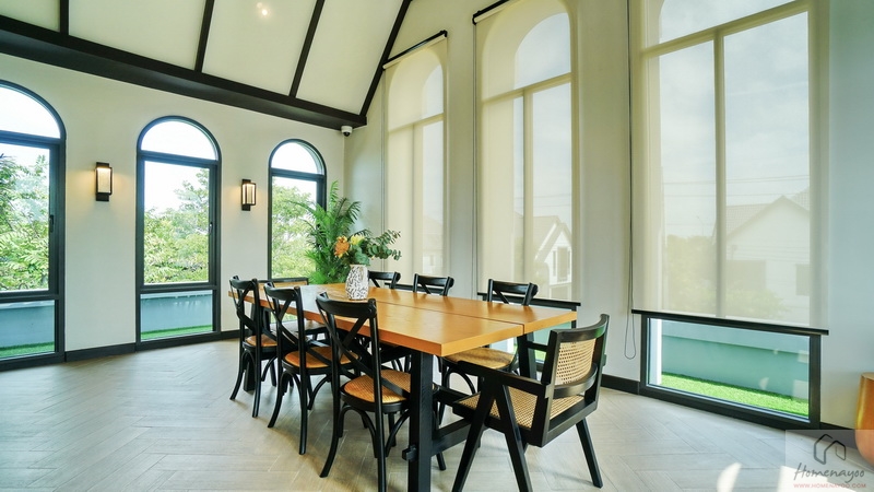 เปิดรับความร่มรื่นเป็นธรรมชาติได้รอบด้าน มาพร้อมครัวไทยแยกเป็นสัดส่วนเพื่อการใช้งานที่คล่องตัว บางแบบบ้านมีพื้นที่ Double Volume ฝ้าเพดานสูงโปร่งถึง 6 ม. และห้องพักผ่อนส่วนตัวของแม่บ้าน พร้อมนวัตกรรมบ้านสีเขียว เช่น หลังคาทรงจั่วพร้อมฉนวนกันความร้อนใต้หลังคา