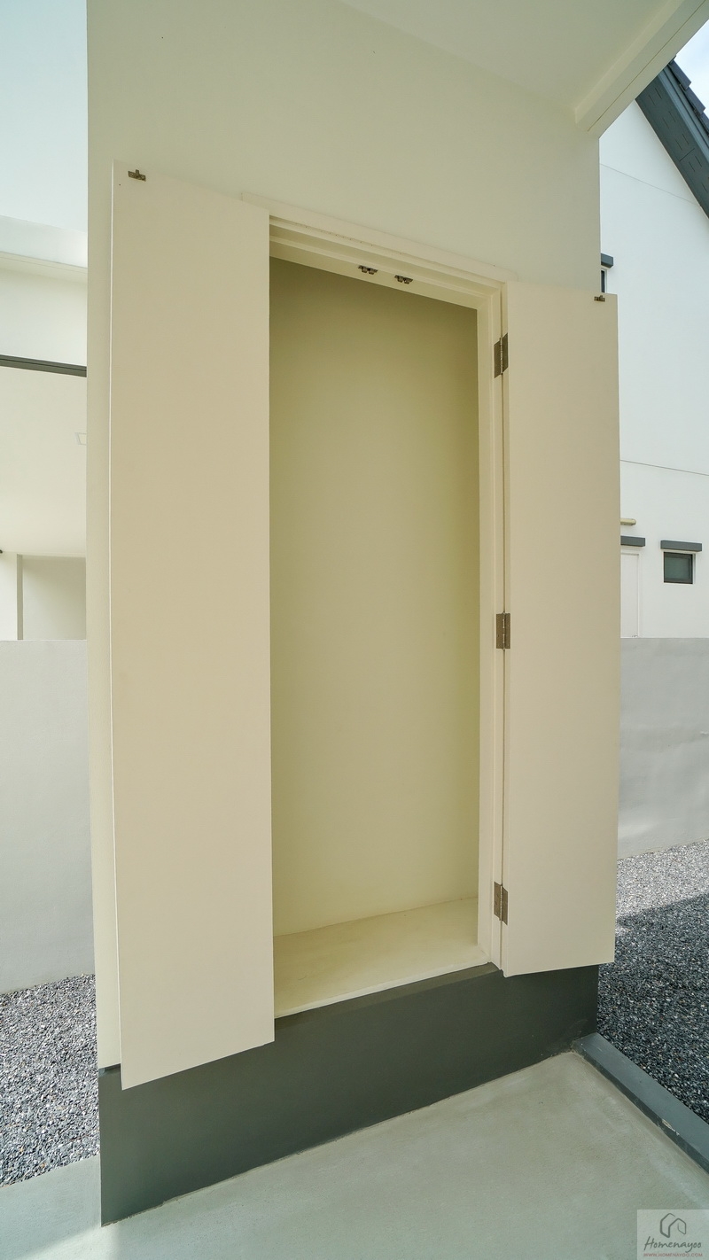 ด้านในพื้นปูกระเบื้องมาให้เรียบร้อย ใช้เก็บของต่าง ๆ ได้เยอะ ไม่ว่าจะเป็น อุปกรณ์ทำความสะอาด, ของใช้เล็กน้อย หรือถุงกอล์ฟ เป็นต้น