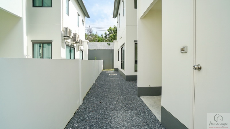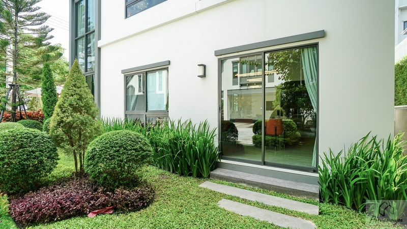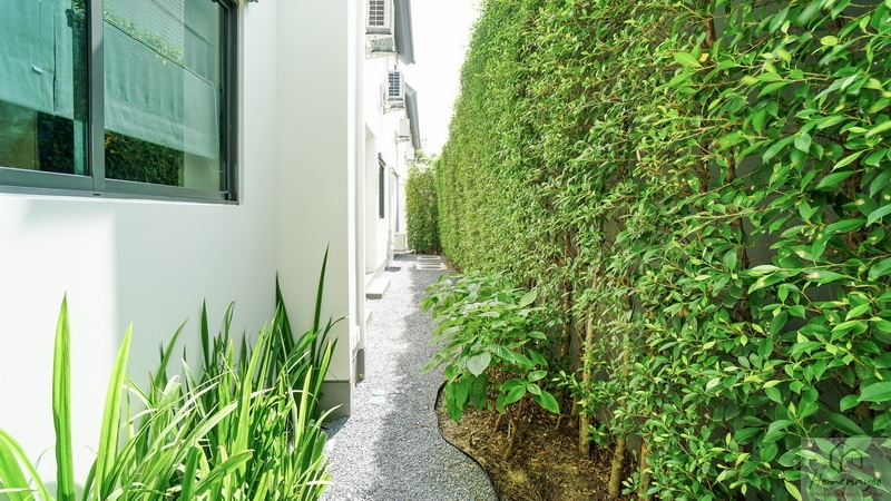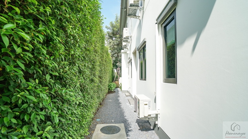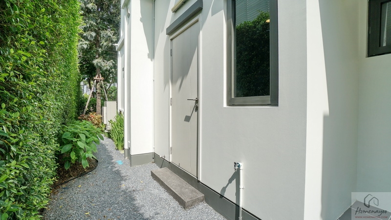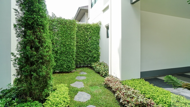 ลัดไปยังข้างตัวบ้านจัดเป็นสวน Softscape ฝั่งนี้มีประตูบานเลื่อนเปิดเชื่อมเข้าในตัวบ้านได้อีกทาง