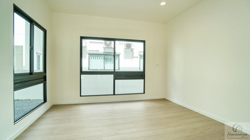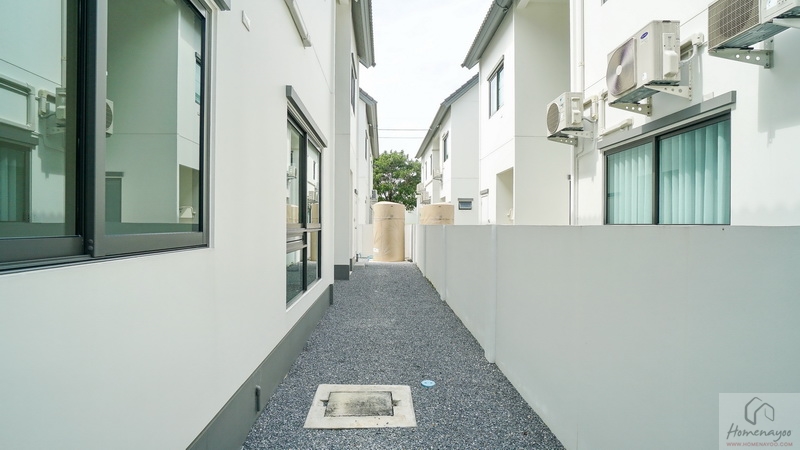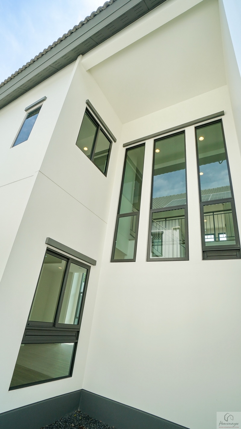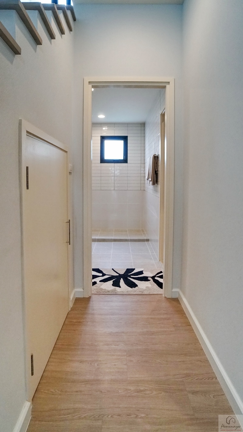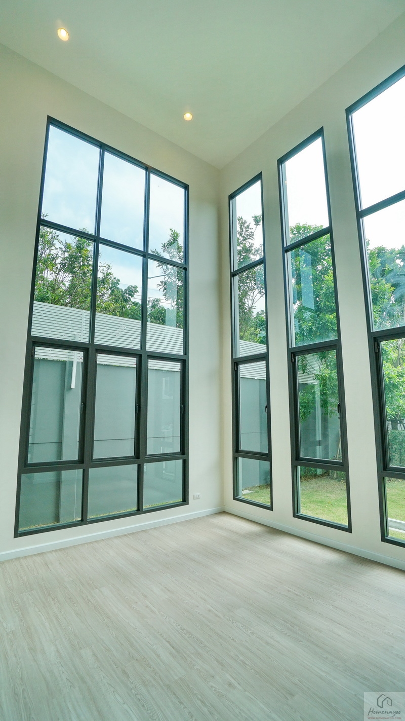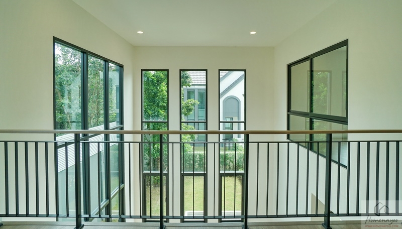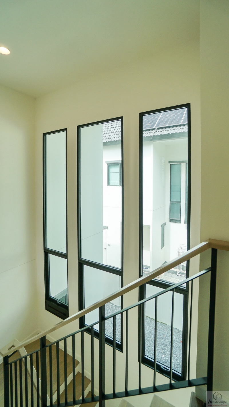 ไปดูอีกฝั่งของบ้านกันบ้าง ระหว่างทางเดินมีหน้าต่างบานใหญ่ให้อีก 1 ชุด หากต้องการความโปร่งมากขึ้นก็ติดกระจกเงาเหมือนกับบ้านตัวอย่างก็ลงตัว
