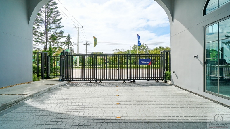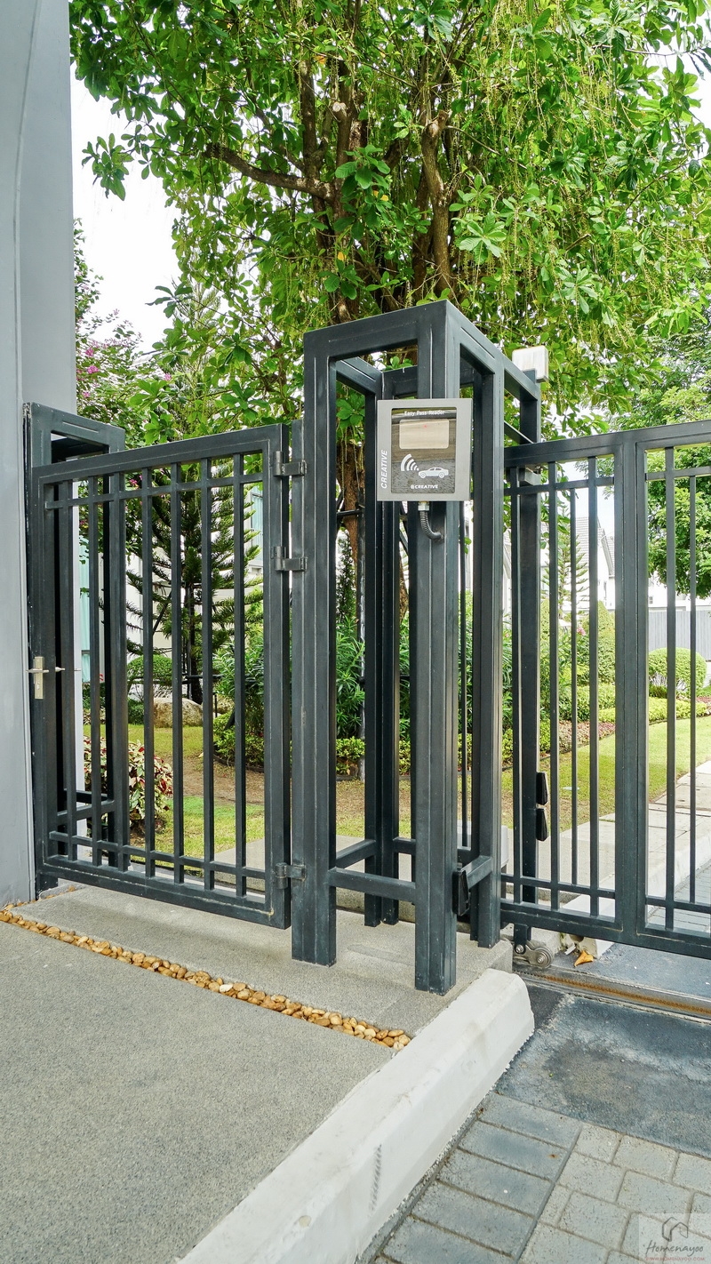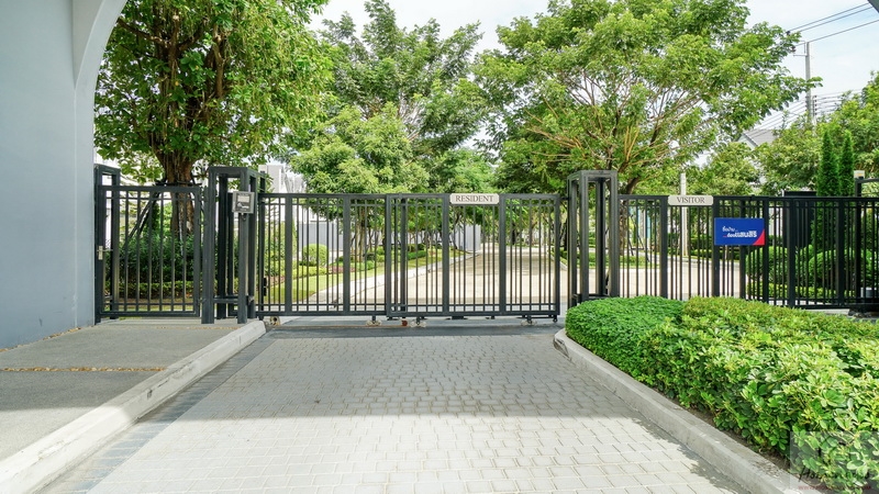 โครงการแบ่งช่องเดินรถออกเป็น 2 ฝั่ง พร้อมแยกเลนสำหรับ Resident และ Visitor ไว้ชัดเจน เพื่ออำนวยความสะดวกให้ลูกบ้านเข้า-ออกได้อย่างรวดเร็ว กั้นส่วนด้วยประตูรั้วเหล็กรางเลื่อนอัตโนมัติ