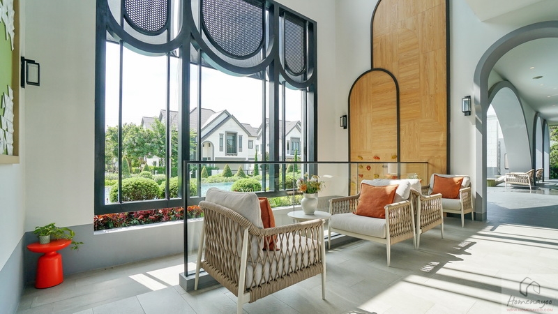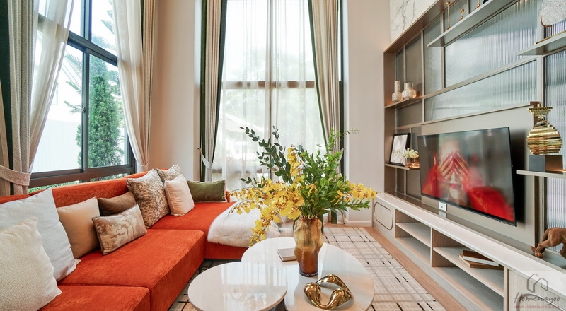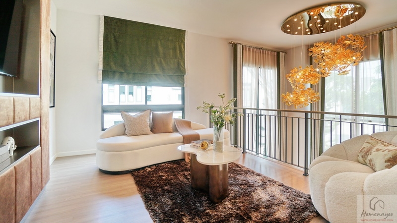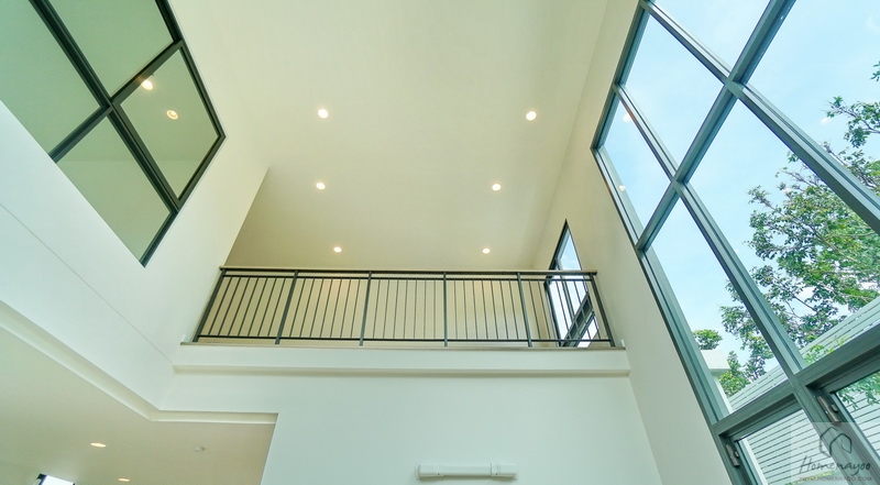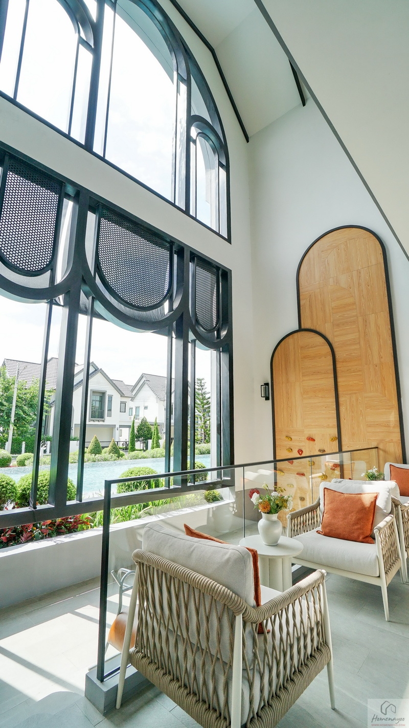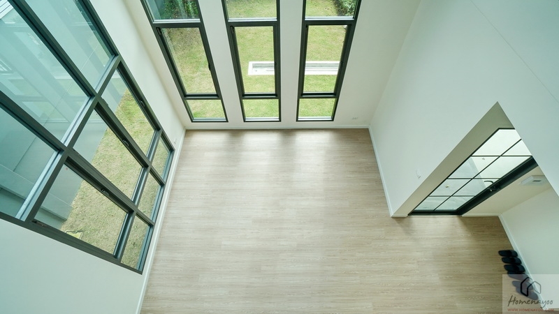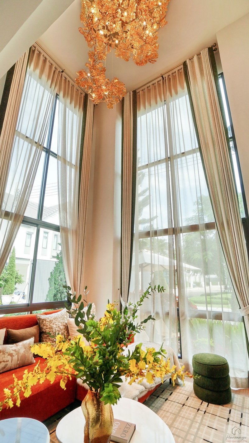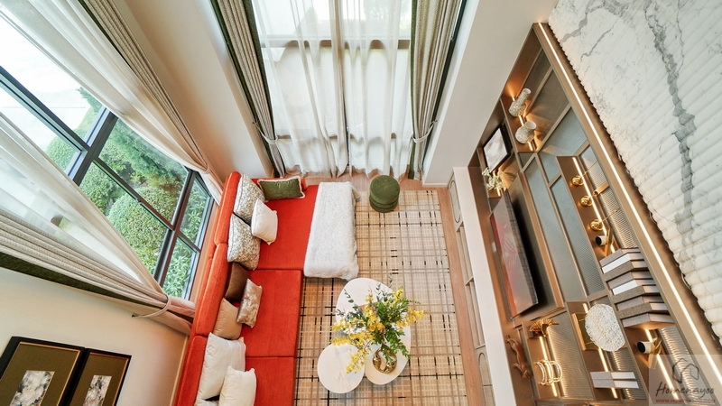 Highlights ของบ้านคือ Living Area มาพร้อม Double Volume ความสูงจากระยะพื้นชั้นล่างถึงฝ้าเพดานชั้นบนประมาณ 6 ม. บรรยากาศโดยรอบโอบล้อมด้วยกระจก Full Height ทรงสูงจรดเพดานชั้นบน ช่วยให้บ้านดูโปร่ง โล่ง สบาย เพิ่มความหรูหราได้เป็นอย่างมาก