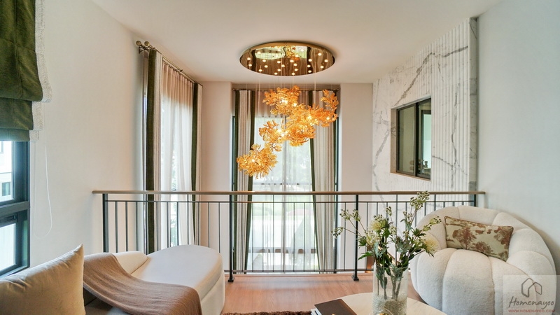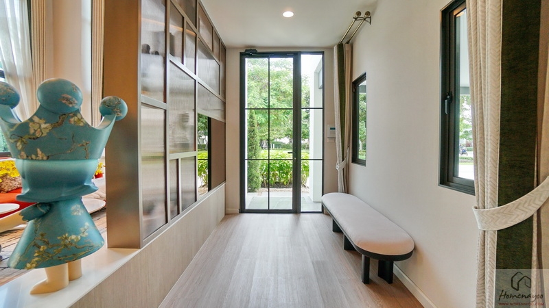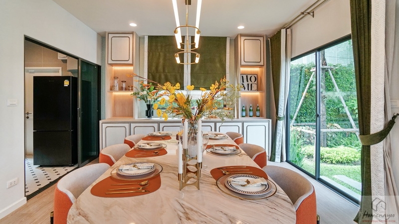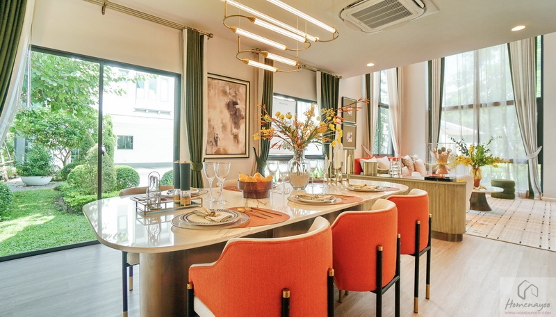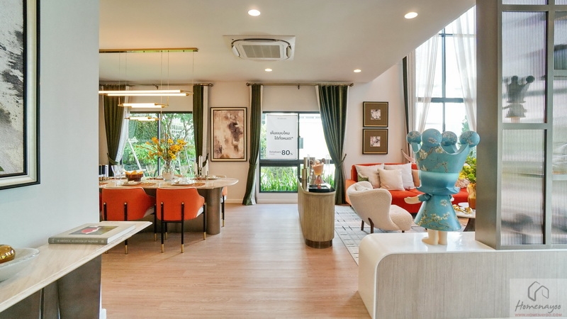 เปิดรับความร่มรื่นเป็นธรรมชาติได้รอบด้าน ตอบโจทย์ครอบครัวรุ่นใหม่ด้วยดีไซน์ที่แตกต่างอย่างทันสมัยตอบรับไลฟ์สไตล์ของทุกครอบครัวทั้งดีไซน์และวัสดุที่คัดสรรมาอย่างลงตัว มาพร้อมครัวไทยแยกเป็นสัดส่วนเพื่อการใช้งานที่คล่องตัว บางแบบบ้านมีพื้นที่ Double Volume ฝ้าเพดานสูงโปร่งถึง 6 ม. และห้องพักผ่อนส่วนตัวของแม่บ้าน