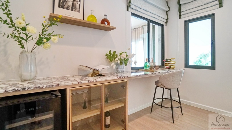 ใกล้กันบ้านตัวอย่าง Built-in เคาน์เตอร์จัดเป็นมุม Pantry สำหรับเตรียมอาหาร, ของว่าง, วางเครื่องดื่ม, ชงชา-กาแฟ หรือปิ้งขนมปัง