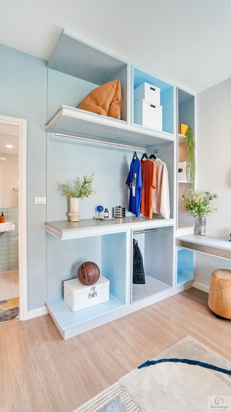 ใกล้กัน Built-in เป็นมุมตู้เสื้อผ้าพร้อมชั้นวางของสวย ๆ