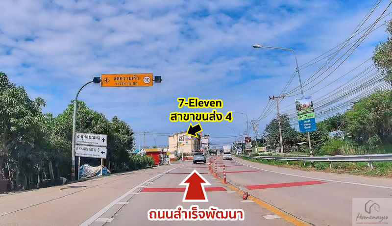 ขับตรงตามทางเรื่อย ๆ บนถนนสำเร็จพัฒนาฝั่งมุ่งหน้าไป อ.พุทธมณฑล ผ่าน 7-Eleven สาขาขนส่ง 4 บริเวณนี้ฝั่งซ้ายมือข้างร้านสะดวกซื้อคือทางหลวงชนบท นบ.5029 ที่ใช้เชื่อมต่อกับเส้น นบ.3028 แล้วออกไปยังซอยวัดศรีประวัติหรือถนนสำเร็จพัฒนาได้อีกทาง