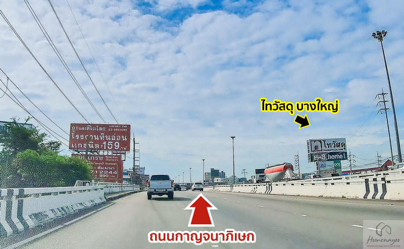 หลังจากออกเส้นหลักให้ขับตรงต่อไปเรื่อย ๆ ผ่านไทวัสดุ บางใหญ่