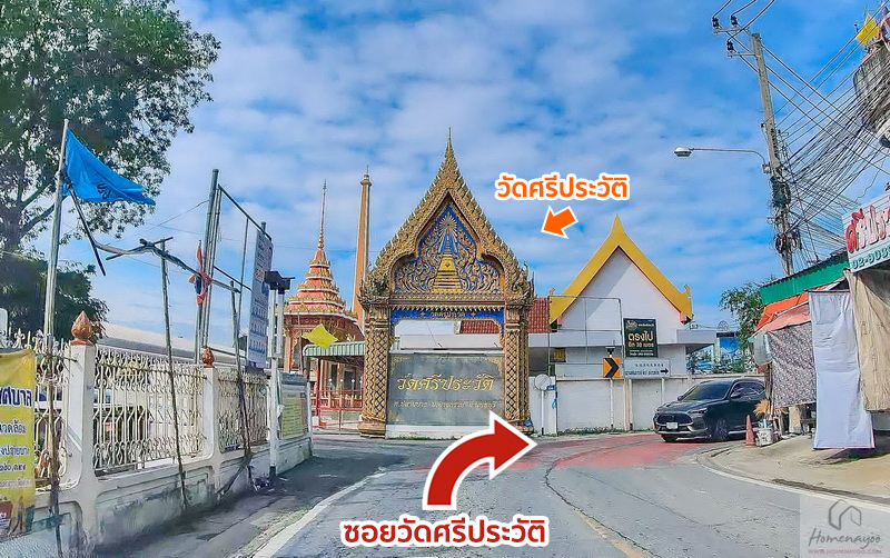 หลังจากกลับรถมาประมาณ 200 ม.* ให้เลี้ยวซ้ายเข้าสู่ซอยวัดศรีประวัติ