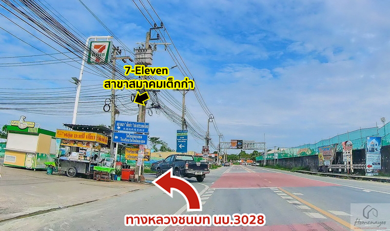 ตามทางมาสักระยะให้เลี้ยวซ้ายเข้าสู่ทางหลวงชนบท นบ.3028 ซึ่งหน้าปากซอยจะมีร้านสะดวกซื้อ 7-Eleven สาขาสมาคมเต็กก่าเป็นจุดสังเกต