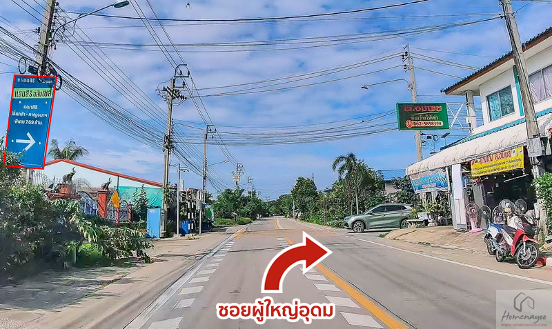 ออกจากซอยผู้ใหญ่อุดมให้เลี้ยวซ้ายเข้าสู่ถนนสำเร็จพัฒนา