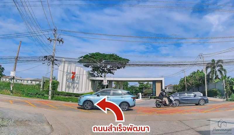 ตรงตามทางเรื่อย ๆ จะเจอป้ายนำทางของโครงการตั้งอยู่เป็นระยะ ๆ โดยเส้น นบ.3028 จะมีซอยย่อยหลายซอยให้ใช้เชื่อมออกไปยังถนนสำเร็จพัฒนาได้ สำหรับวันนี้เราจะตามป้ายแล้วเลี้ยวขวาเข้าสู่ซอยผู้ใหญ่อุดมค่ะ