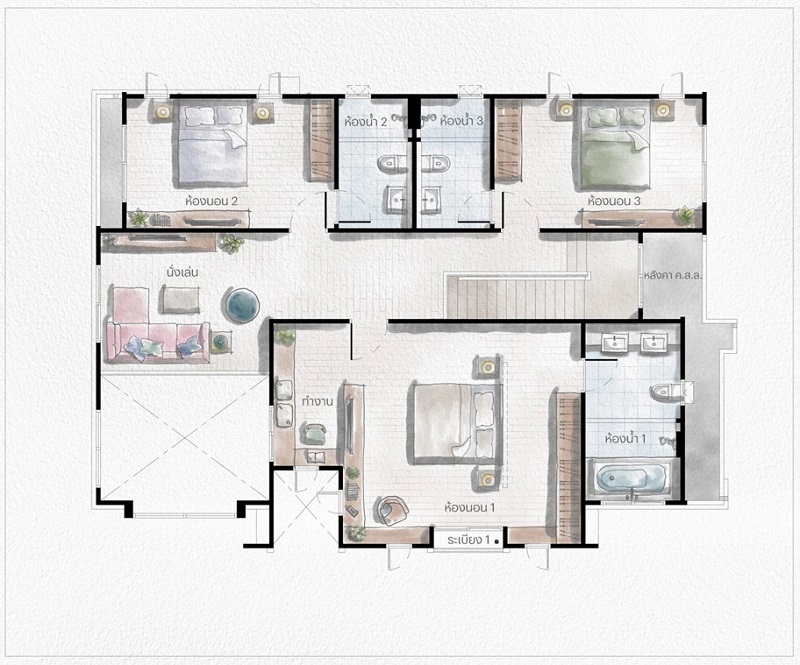 สุดท้ายคือห้องนอน 3 ซึ่งอยู่ใกล้ ๆ กับโถงบันไดค่ะ