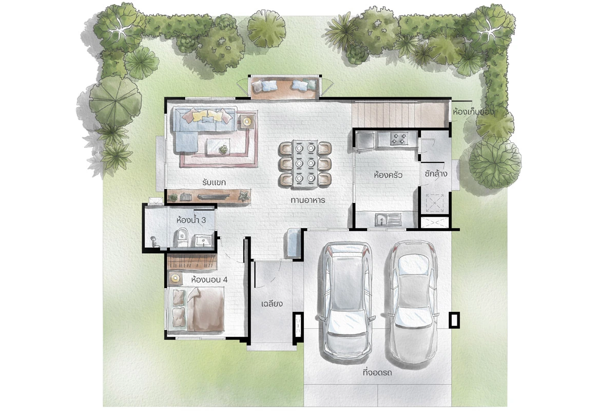 • ฟังก์ชันบ้าน 4 ห้องนอน, 3 ห้องน้ำ พร้อมที่จอดรถ 2 คัน