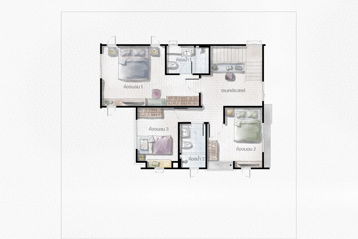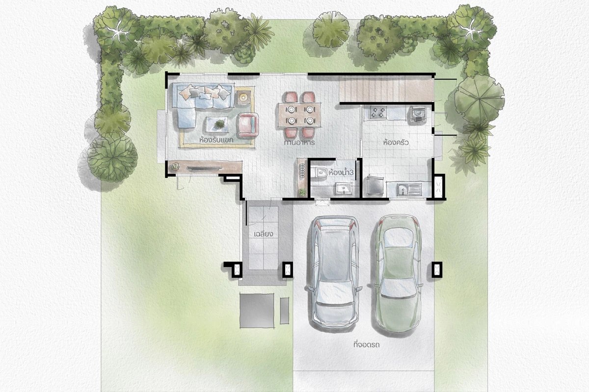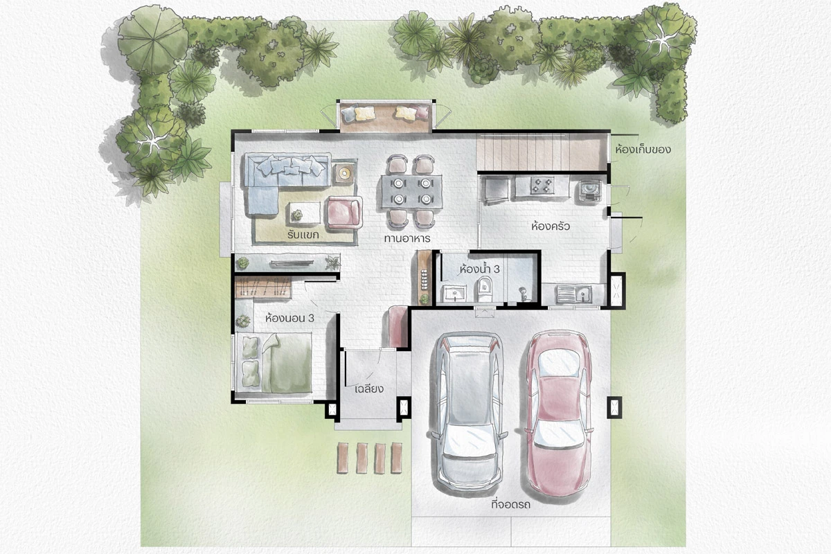 • ฟังก์ชันบ้าน 3 ห้องนอน, 2 ห้องน้ำ พร้อมที่จอดรถ 2 คัน